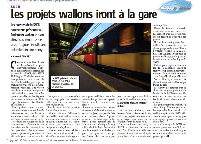 .Un article à lire dans L'Avenir du 06/03/13