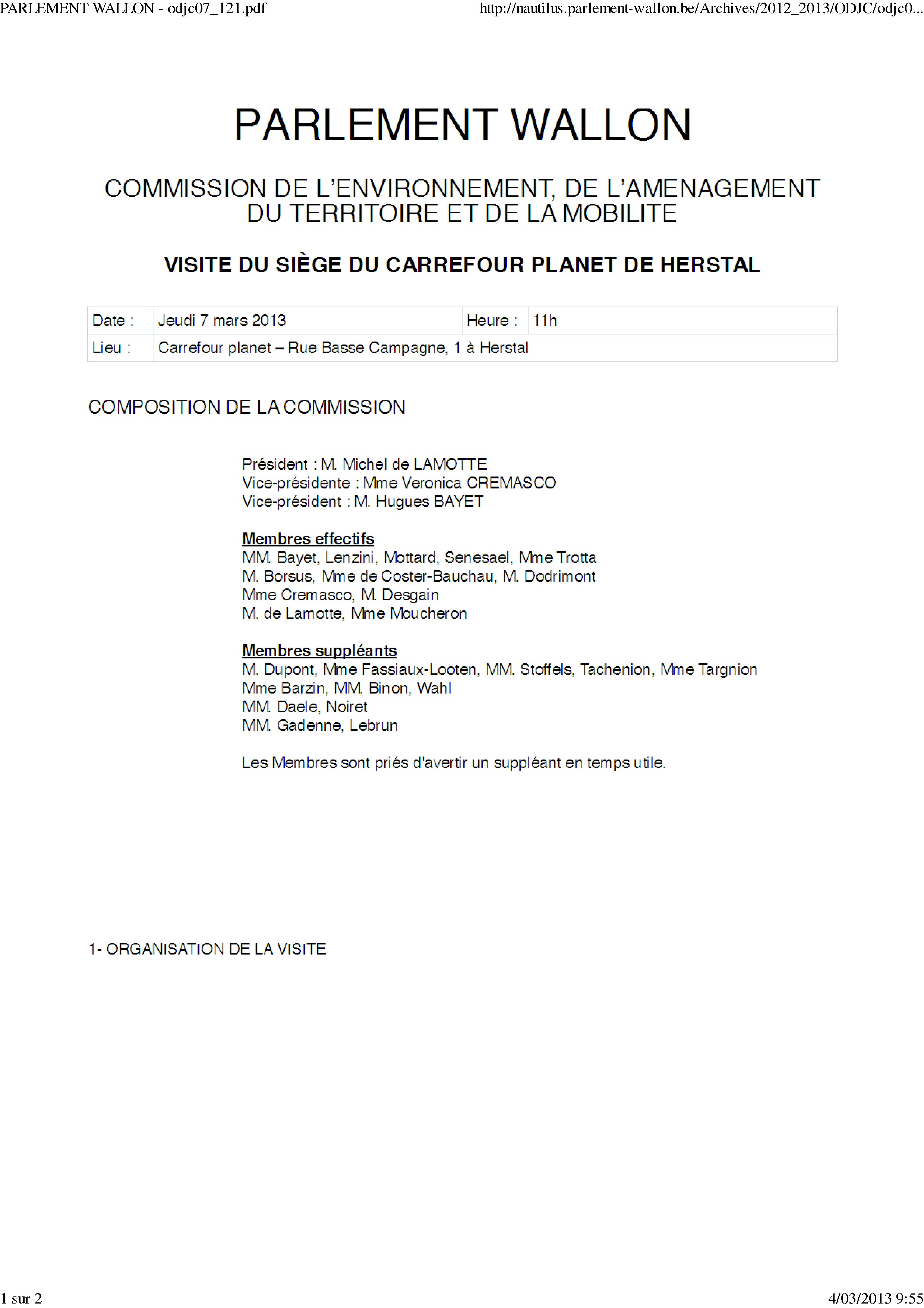 Ce jeudi 7/03/13, dans le cadre de ses travaux sur les invendus alimentaires, la commission de l’environnement, de l’aménagement du territoire et de la mobilité sera en visite au Carrefour Planet de Herstal ou une structure de redistribution des invendus encore consommables est déjà mise en place.
